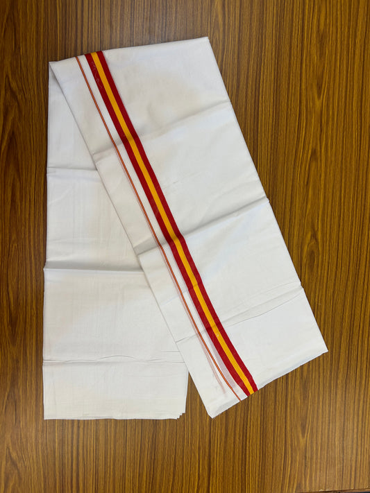 Tvk Veshti - 20% Discount ! KaithariKada 100% Cotton Pure White Double Mundu/Dhoti - 100X80 - 1.25 inch Dark Orange & Yellow kara 3.70 mtr (8 muzham) - 3 KK5372 PMC