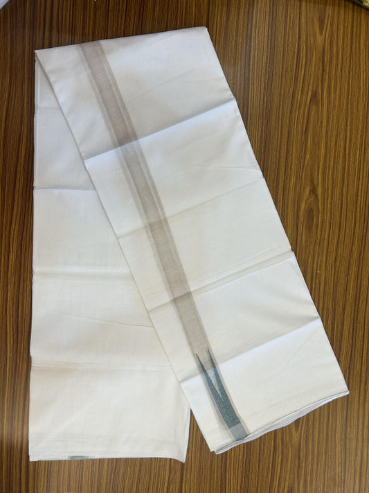 25% Discount ! KaithariKada Handloom Unakkupaav - Kerala Handloom - 100% Pure Cotton Off White (Unbleached) Double Mundu/Dhoti - 80x90 - 1.5 inch Gold Kasav & Silver Kasav Jacquard Design Kara 4 mtr(8.5 Muzham) - 1KK5234 RAM