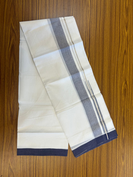 20% Discount ! Kaitharikada Balaramapuram 100% Pure Cotton Double Pure White Mundu/Dhoti - 100x80 - 1.5 inch Silver Kasav & Navy Blue Shaded Stripes Chutty 3.90 mtr (8 muzham) - 169 KK5361 PMC