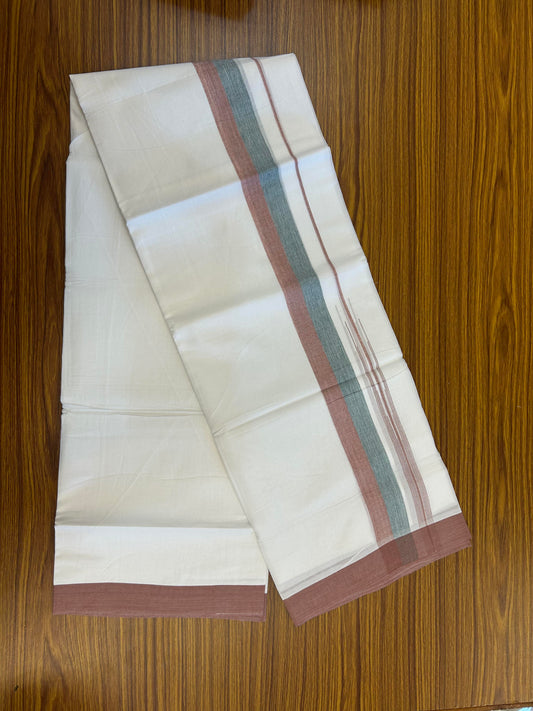 20% Discount ! Kaitharikada Balaramapuram 100% Pure Cotton Double Pure White Mundu/Dhoti - 100x80 - 1.5 inch Brick Red & Green Shaded Stripes Chutty 3.90 mtr (8 muzham) - 97 KK5361 PMC