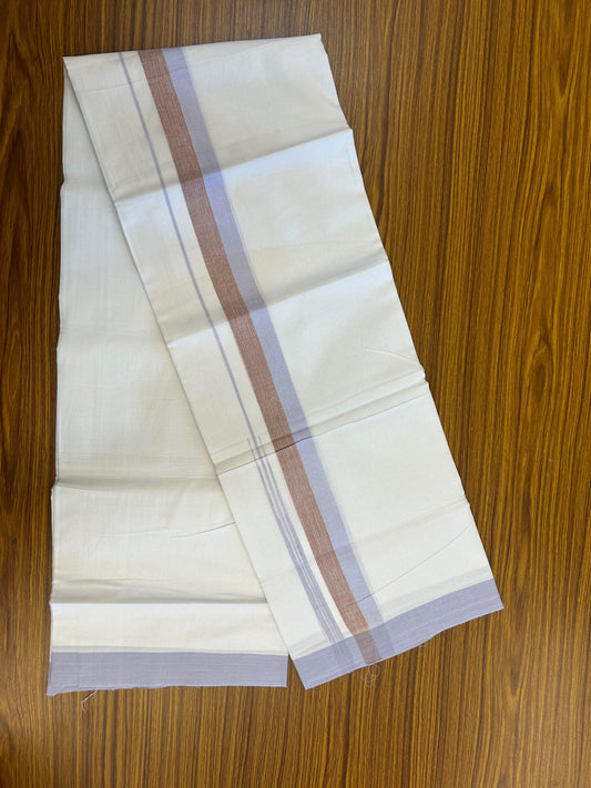 25% Discount ! KaithariKada Handloom Millpaav Kerala Handloom - 100% Pure Cotton Off White - (Unbleached) Double Mundu/Dhoti - 80X90 - 1 inch Gold Kasav & Silver Kasav Stripes Kara 4 mtr (8.5 muzham)- 17KK5234 RAM