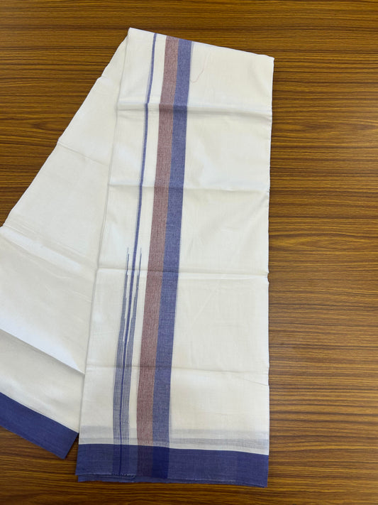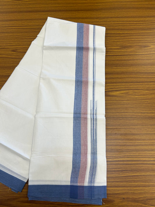 20% Discount ! Kaitharikada Balaramapuram 100% Pure Cotton Double Pure White Mundu/Dhoti - 100x80 - 1.5 inch Blue & Maroon Shaded Stripes Chutty 3.90 mtr (8 muzham) - 98 KK5361 PMC