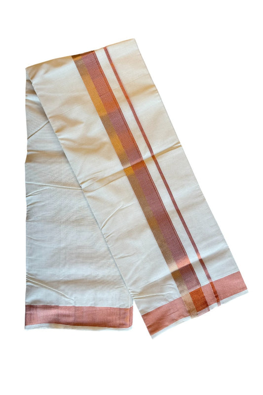 30% DISCOUNT!! KaithariKada HANDLOOM Millpaav Balaramapuram - 100% PURE Cotton OFF White - (Unbleached) Double Mundu/Dothi - 3.15 inch COPPER GOLD kasavu stripes kara - 6KK495RAM
