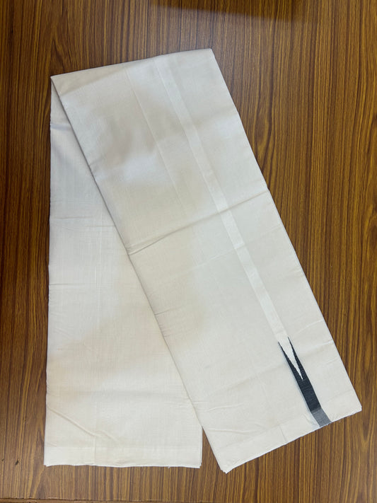 25% Discount!! KaithariKada Handloom Unakkupaav - Kerala Handloom - 100% Pure Cotton Off White - (Unbleached) Double Mundu/Dothi - 100x80 - 1.5 cm Puliyilakkara Black Chutty Kara 4 mtr (8.5 muzham) - 45 KK5353 REA