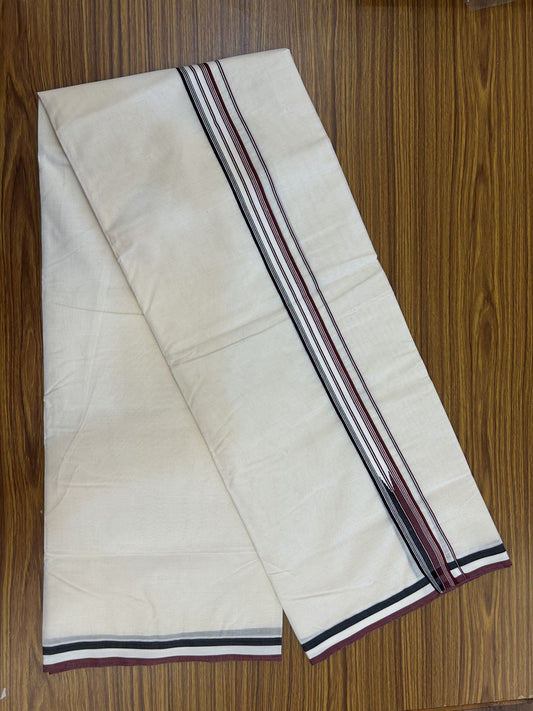 Admk Veshti - 20% Discount! KaithariKada 100% Cotton Off White Double - (Unbleached) Mundu/Dhoti - 100X100 - 2 inch Black White & Maroon kara - 4KK5211ASH