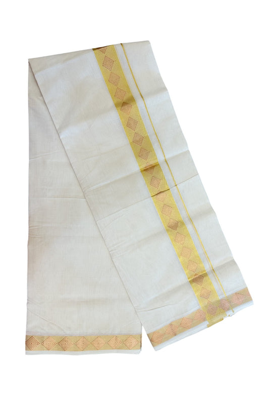 25% Discount ! KaithariKada Handloom Unakkupaav Balaramapuram - 100% Pure Cotton Off White - (Unbleached) Double Mundu/Dhoti -100x80 - 1.75 inch Gold Kasav & Copper Jacquard Design Kara 4 mtr (8.5 Muzham) - 12KK5231 ABH