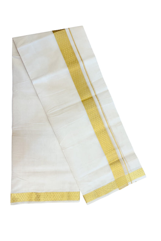 25% Discount ! KaithariKada Handloom Unakkupaav Balaramapuram - 100% Pure Cotton Off White- (Unbleached) Double Mundu/Dhoti - 100x80 - 1.75 inch Gold Kasav Jacquard Design Kara 4 mtr (8.5 Muzham) - 13KK5231 ABH