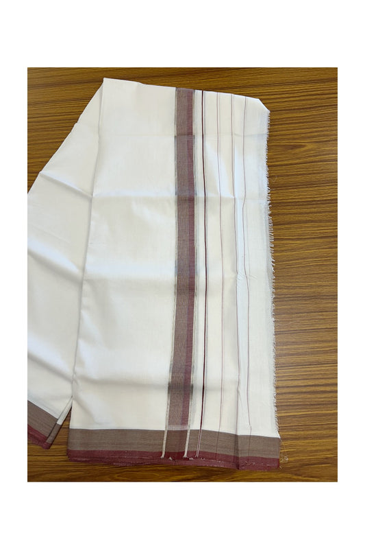 25% Discount ! KaithariKada Handloom Unakkupaav Balaramapuram - 100% Pure Cotton Pure White Double Mundu/Dhoti - (80X100) - 6.5 inch Silver Kasav & Maroon Shaded Striped Kara - 7KK5209 REA