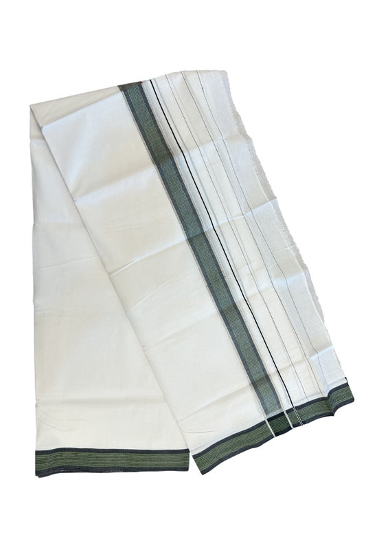 25% Discount ! KaithariKada Handloom Unakkupaav Balaramapuram - 100% Pure Cotton Pure White Double Mundu/Dhoti -(80X100) - 6.5 inch Silver Kasav & Black Green Shaded Striped Kara - 8KK5209 REA