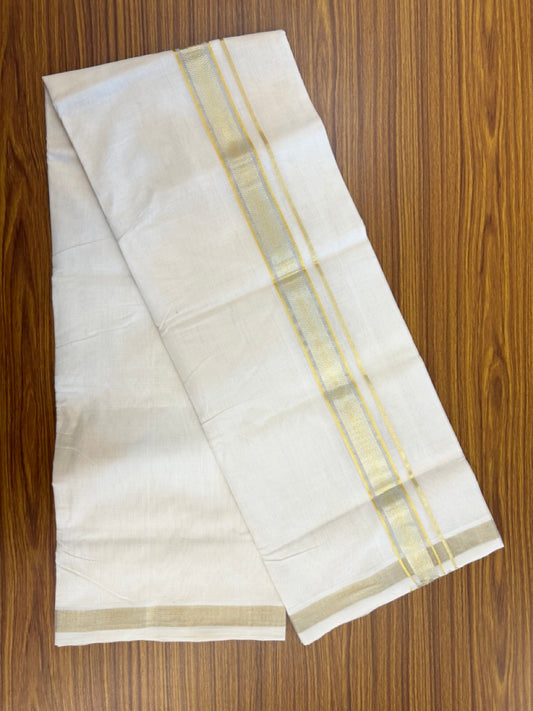 25% Discount ! KaithariKada Handloom Unakkupaav Balaramapuram - 100% Pure Cotton Off White - (Unbleached) Double Mundu/Dhoti - 80X90 - 1.5 inch Gold Kasavu & Silver Kasavu Jacquard Kara 4 mtr (8.5 muzham) - 50 KK5234 RAM