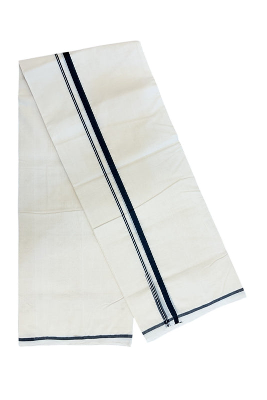 25% Discount KaithariKada Handloom Millpaav Balaramapuram - 100% Pure Cotton Off White (Unbleached) Double Mundu/Dhoti - 1cm Navy Blue Kara-177