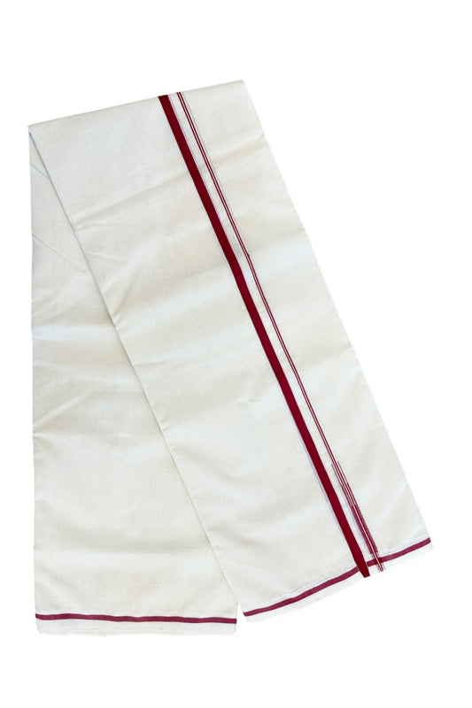 25% Discount KaithariKada Handloom Millpaav Balaramapuram - 100% Pure Cotton Off White (Unbleached) Double Mundu/Dhoti - 80X90 - Puliyilakkara 1 cm Reddish Maroon Chutty Kara 4 mtr (8.5 muzham)- 22KK5234 RAM