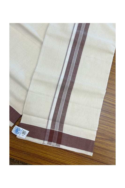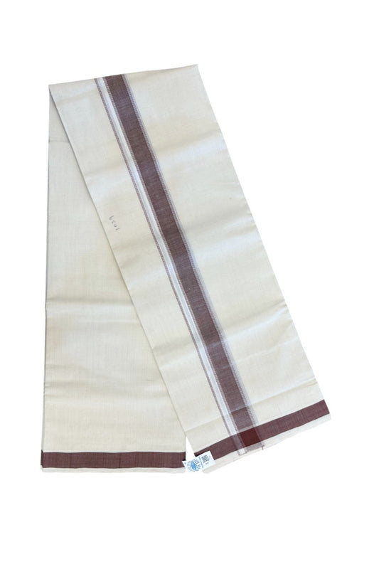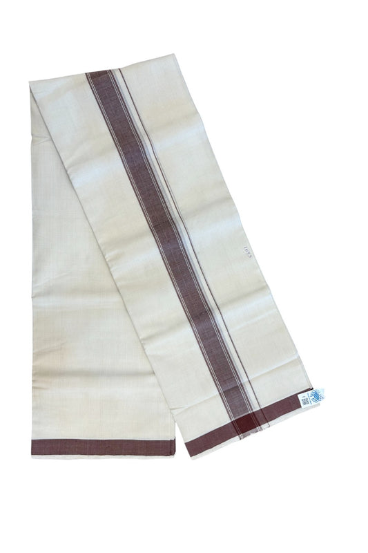 25% Discount KaithariKada HANDLOOM Unakkupaav Balaramapuram - 100% PURE Cotton off white (Unbleached) Double Mundu/Dhoti - 80X90 - 1.75 inch Chocolate Brown Stripes Kara 3.80 mtr - 4KK5192ELA