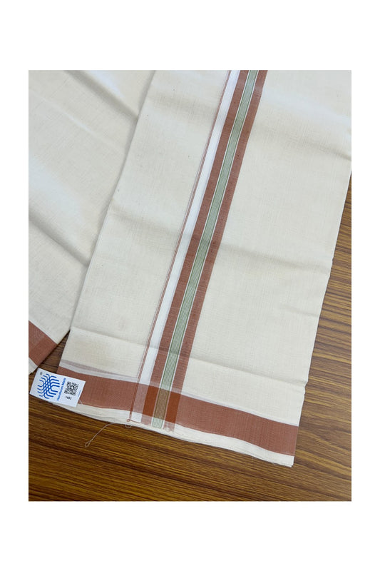 25% Discount KaithariKada HANDLOOM Unakkupaav Balaramapuram - 100% PURE Cotton off white (Unbleached) Double Mundu/Dhoti - 80X90 - 1.5 inch Cinnamon Brown & Green Center Stripes Kara 3.80 mtr - 13KK5192ELA