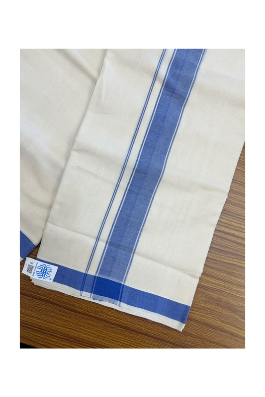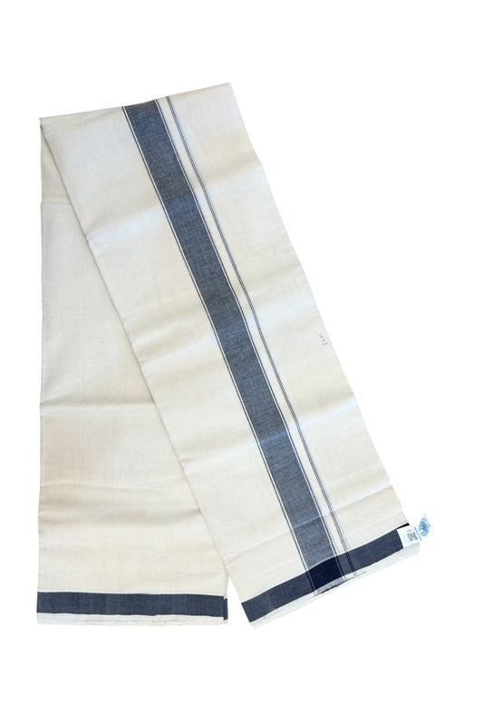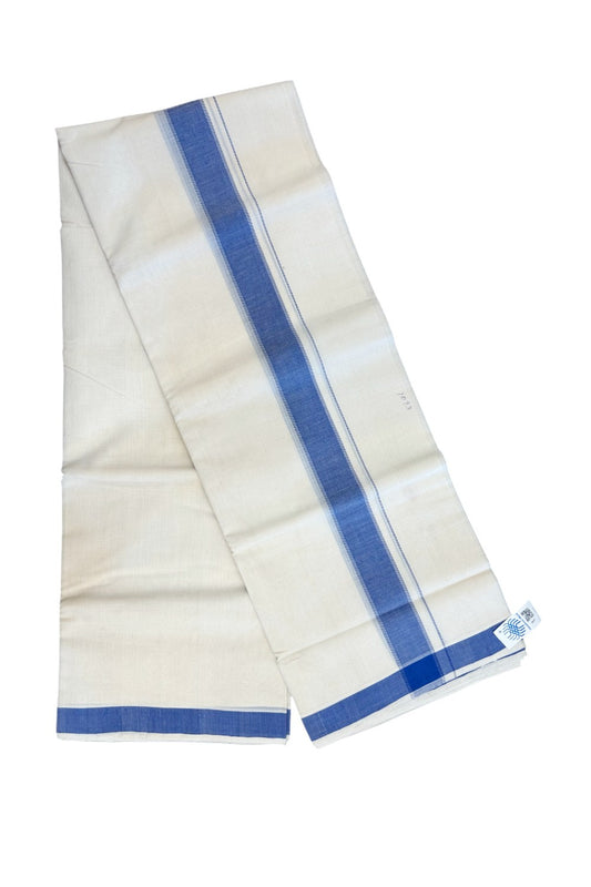 25% Discount KaithariKada HANDLOOM Unakkupaav Balaramapuram - 100% PURE Cotton off white (Unbleached) Double Mundu/Dhoti - 80X90 - 2 inch Blue Stripes Kara 3.80 mtr - 16KK5192ELA