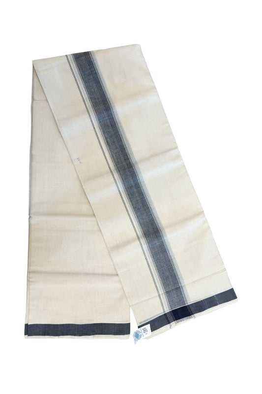 25% Discount KaithariKada HANDLOOM Unakkupaav Balaramapuram - 100% PURE Cotton off white (Unbleached) Double Mundu/Dhoti - 80X90 - 1.75 inch Black Stripes Kara 3.80 mtr - 3KK5192ELA