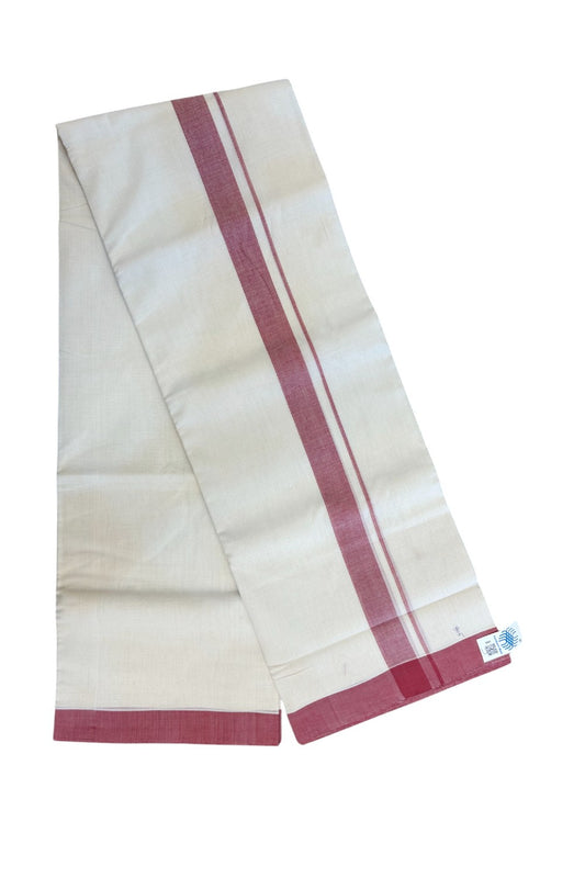 25% Discount KaithariKada Handloom Unakkupaav Balaramapuram - 100% PURE Cotton off white (Unbleached) Double Mundu/Dhoti - 80X90 - 1.5 inch Light Maroon Side Striped Kara 3.80 mtr (8 muzham) - 9 KK5293 ELA