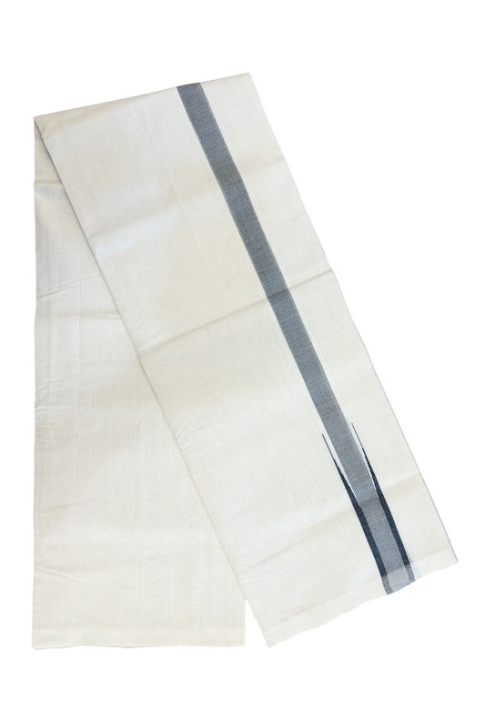 25% Discount! KaithariKada Balaramapuram Handloom Millpaav- 100% Pure Cotton 100x100 Double Mundu/Dhoti Off White (Unbleached) - Puliyilakkara Navy Blue & Kasavu 0.5 inch Kara-5RAM