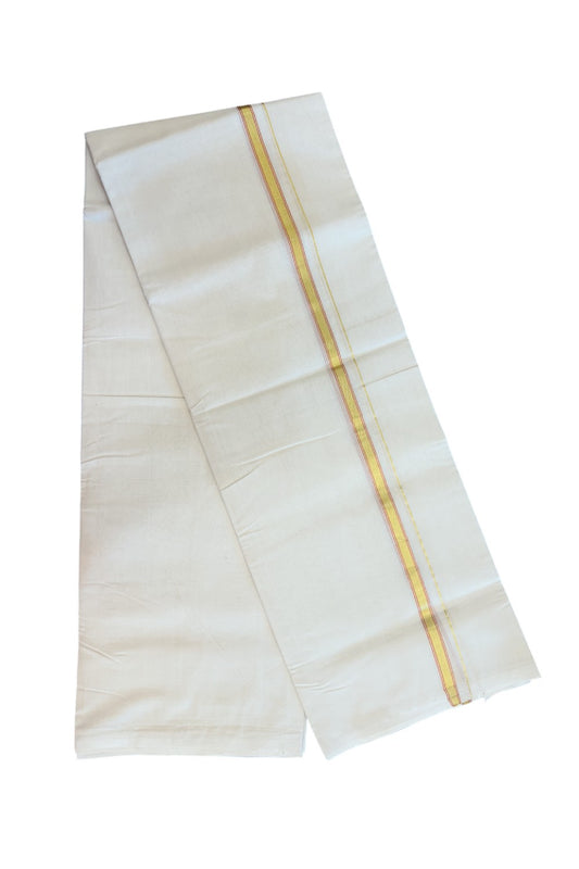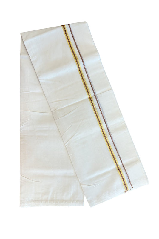 25% DISCOUNT! KaithariKada BALARAMAPURAM HANDLOOM UNAKKUPAAV - 100% PURE Cotton Off white (Unbleached) Double Mundu/Dhoti - 0.5 inch Gold Kasavu & Copper Kasavu Striped Kara (8 Muzham) - 3KK5161SOM