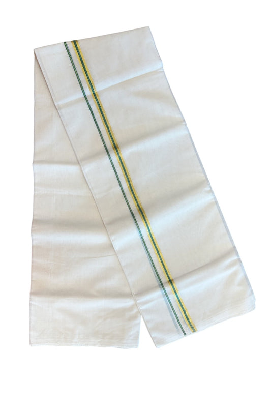 25% Discount! KaithariKada Balaramapuram Handloom Millpaav - 100% Pure Cotton 100x100 Double Mundu/Dhoti Off White - (Unbleached) - Green & white Stripes Kara 3.70 m (8 Muzham) - 3KK469VEL