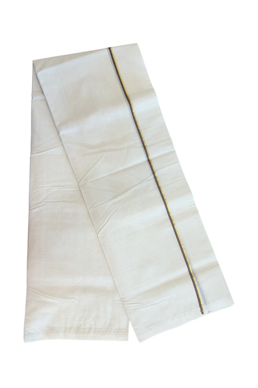 25% DISCOUNT! KaithariKada BALARAMAPURAM HANDLOOM MILLPAAV - 100% PURE Cotton Off white (Unbleached) Double Mundu/Dhoti - 1.25 inch BLACK & Gold Kasav Chutty Kara - 9KK5170RAM