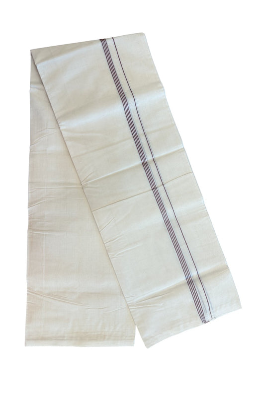 25% Discount! KaithariKada Balaramapuram Handloom 100% Millpaav Cotton Double Mundu/Dhoti Pure white - 100x100 Purple Mulloth Border - 35KK404RAM