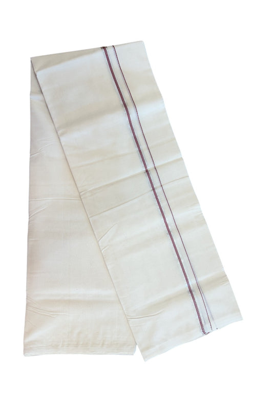 25% DISCOUNT! KaithariKada BALARAMAPURAM HANDLOOM UNAKKUPAAV - 100% PURE Cotton Off white (Unbleached) Double Mundu/Dhoti - 0.5 inch Light Maroon & Black Kara (8 Muzham) - 13KK5161SOM