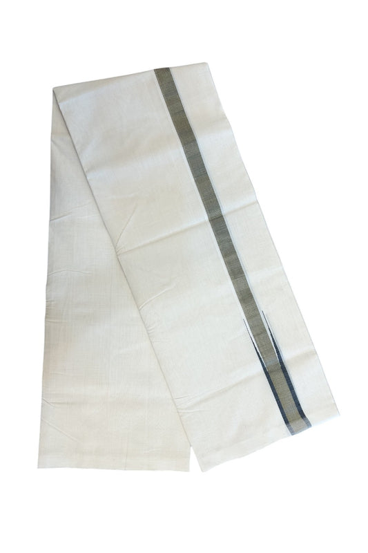 25% Discount! KaithariKada Balaramapuram Handloom Unakkupaav - 100% Pure Cotton Off white (Unbleached) Double Mundu/Dhoti - 2.inch Silver Kasavu & Sage Green Kara-80