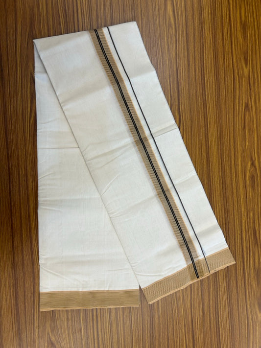 25% Discount!! KaithariKada Handloom Unakkupaav Balaramapuram - 100% Pure Cotton Off White - (Unbleached) Double Mundu/Dothi - 100 x 80 - 1.5 inch Sand Brown Black Strip Kara 3.80 meter (8.5 mulam) - 17 KK5249 REA