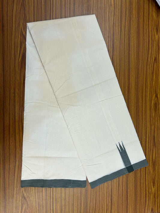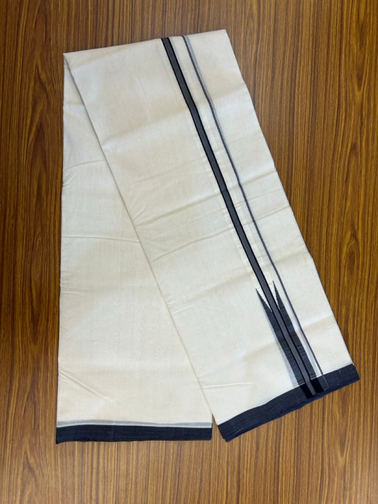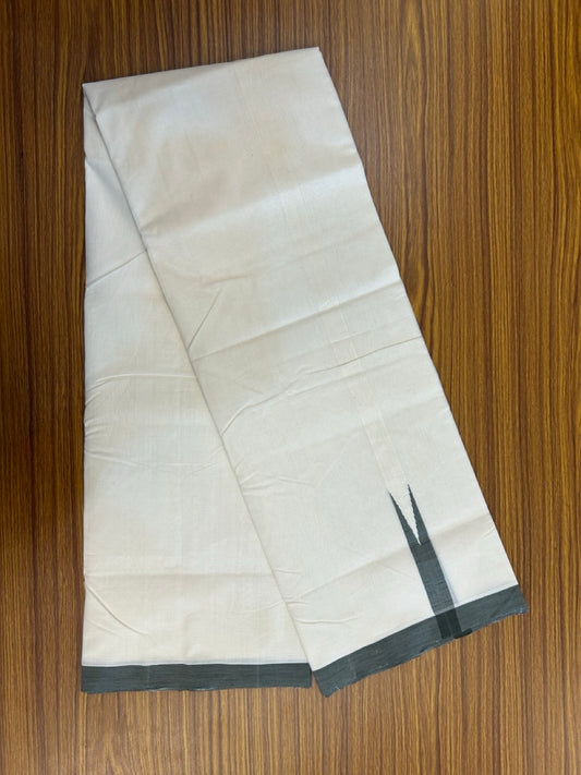 25% Discount!! KaithariKada Handloom Unakkupaav Balaramapuram - 100% Pure Cotton Off White - (Unbleached) Double Mundu/Dhoti - 120 x 100 - 0.75 inch Black & Brown Chutty Kara 4 meter (8.5 muzham) - 9 KK5233 REA