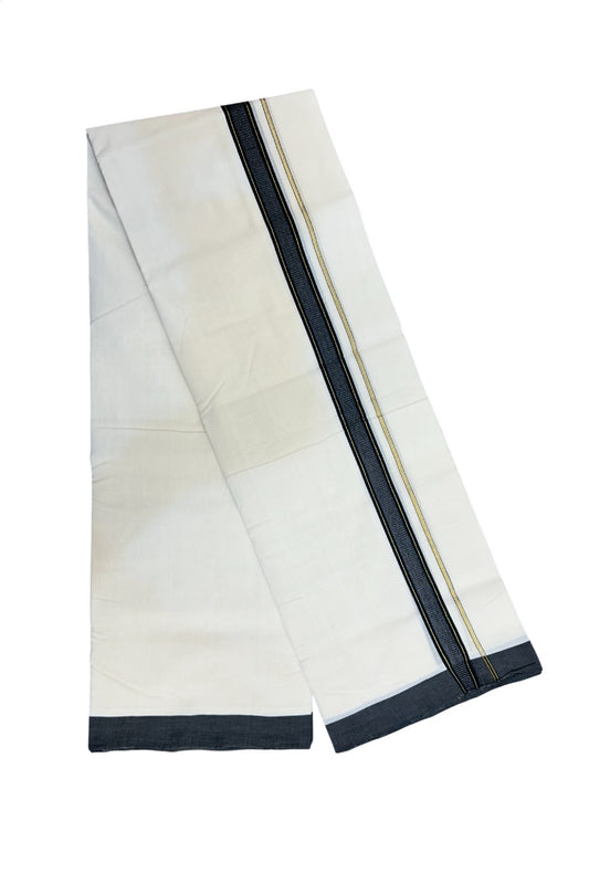25% Discount!! KaithariKada Handloom Unakkupaav Balaramapuram - 100% Pure Cotton Off White - (Unbleached) Double Mundu/Dothi - 100 x 80 - 1.5 inch Ash Black Chutty 4 meter - 2 KK5249 REA