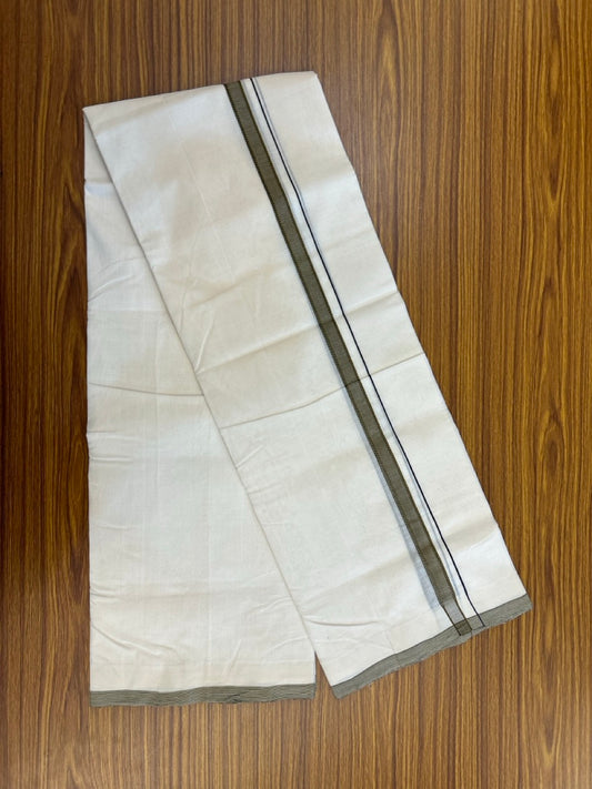 25% DISCOUNT!! KaithariKada HANDLOOM UNAKKUPAAV Balaramapuram - 100% PURE Cotton OFF White - (Unbleached) Double Mundu/Dothi - 100 x 80 - 0.75 inch Brown Ash Green Side Stripes Kara 4 meter - 36 KK5249 REA