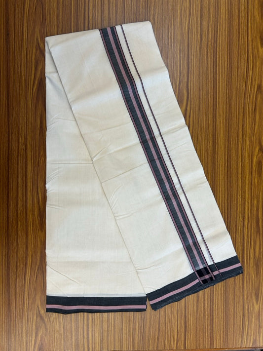 25% Discount!! KaithariKada Handloom Unakkupaav Balaramapuram - 100% Pure Cotton Off White - (Unbleached) Double Mundu/Dothi - 100 x 80 - 1.5 inch Pink Black Black Strip Kara 3.85 meter - 4 KK5249 REA