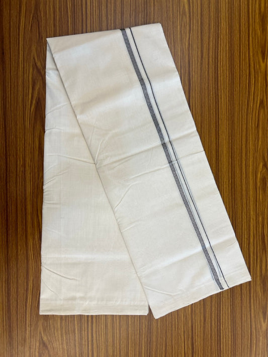 25% Discount!! KaithariKada Handloom Unakkupaav Balaramapuram - 100% Pure Cotton Off White - (Unbleached) Double Mundu/Dhoti - 120 x 100 - 1 inch Navy Blue Chutty Kara 4 meter (8.5 muzham) - 8 KK5233 REA