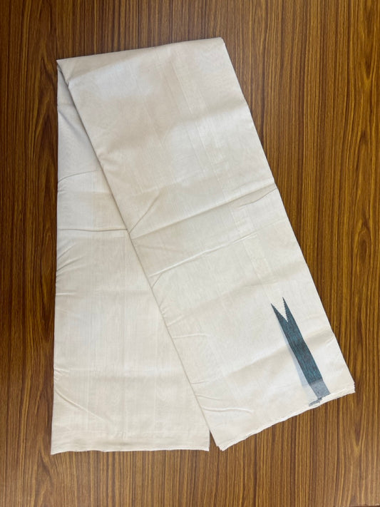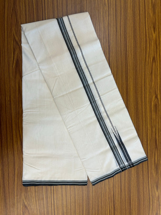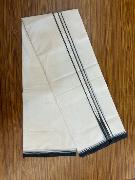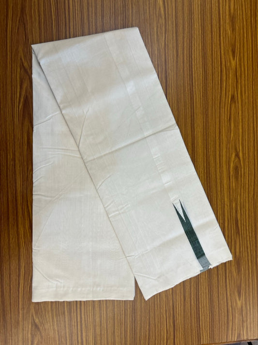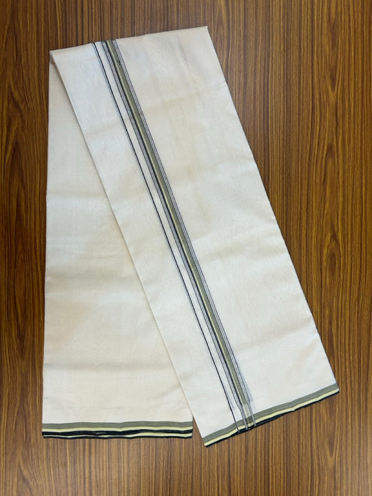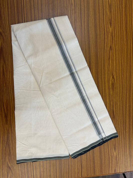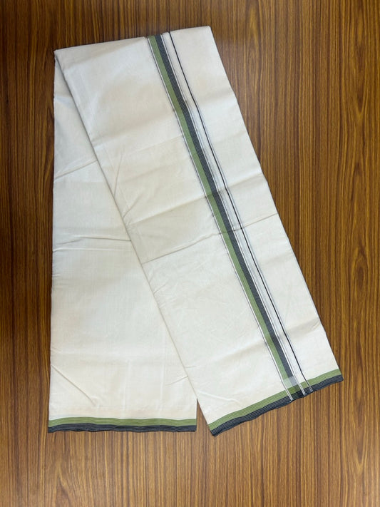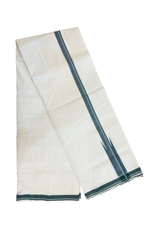 25% Discount!! KaithariKada Handloom Unakkupaav Balaramapuram - 100% Pure Cotton Off White - (Unbleached) Double Mundu/Dothi - 120 x 100 - 0.75 inch Black & Light Green Silver Kasav Striped Kara 4 meter - 1 KK5249 REA
