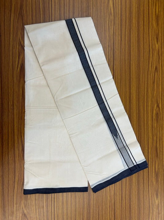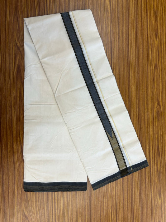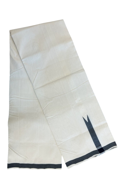 25% DISCOUNT!! KaithariKada HANDLOOM UNAKKUPAAV Balaramapuram - 100% PURE Cotton OFF White - (Unbleached) Double Mundu/Dothi - 120(Twisted) x 100 - 1 inch Black Puliyilakkara chutty 3.80 meter (8.5 Muzham) - 22KK5167REA