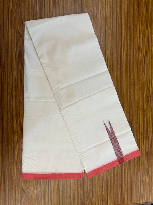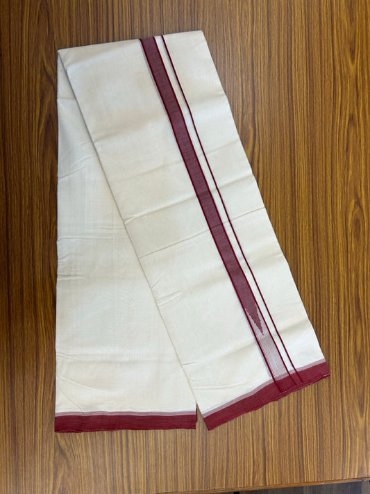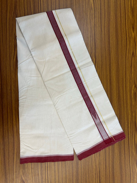 25% Discount!! KaithariKada Handloom Unakkupaav Balaramapuram - 100% Pure Cotton Off White - (Unbleached) Double Mundu/Dothi - 100 x 80 - Maroon White Chutty Kara - 3.85meter - 24 KK5249 REA