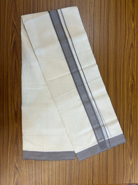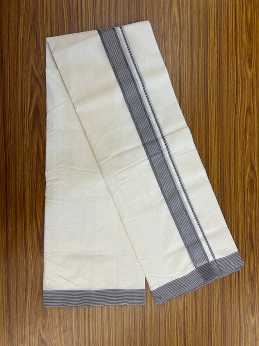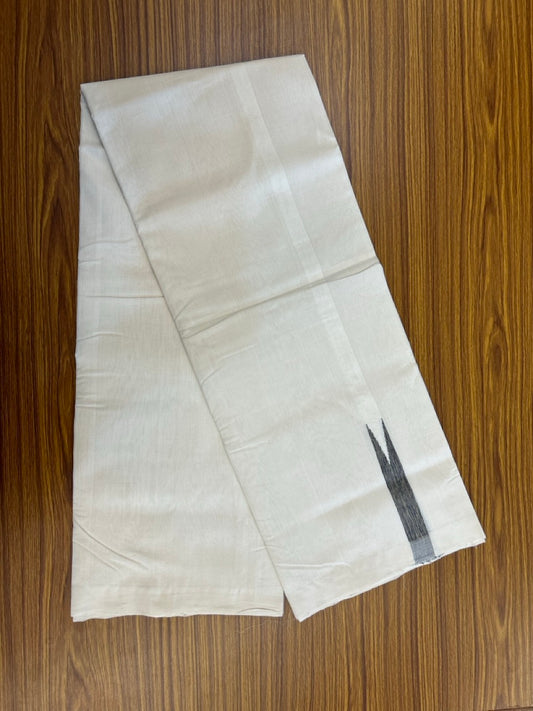 25% Discount!! KaithariKada Handloom Unakkupaav Balaramapuram - 100% Pure Cotton Off White - (Unbleached) Double Mundu/Dothi - 100 x 80 - Ash Black Grey Chutty Silver Kasav Kara - 3.80 meter (8.5 Mulam) - 28 KK5249 REA