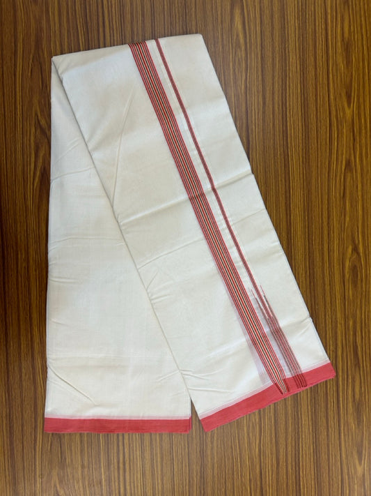 25% Discount!! KaithariKada Handloom Unakkupaav Balaramapuram - 100% Pure Cotton Off White - (Unbleached) Double Mundu/Dothi - 100 x 80 - Pink Red Black Cream Chutty Kara - 3.85meter - 25 KK5249 REA