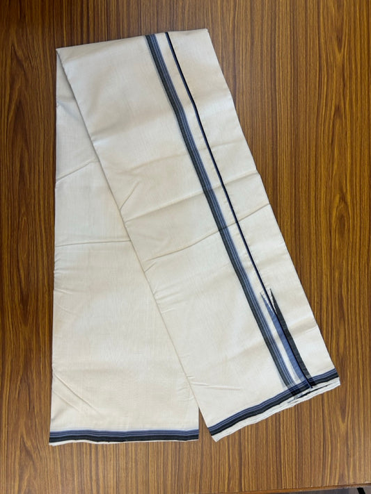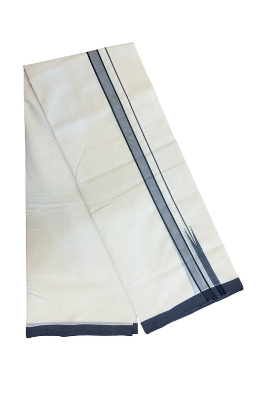25% Discount!! KaithariKada Handloom Unakkupaav Balaramapuram - 100% Pure Cotton Off White - (Unbleached) Double Mundu/Dothi - 100 x 80 - Blue Black Chutty Kara - 3.80 meter (8.5 Mulam) - 29 KK5249 REA