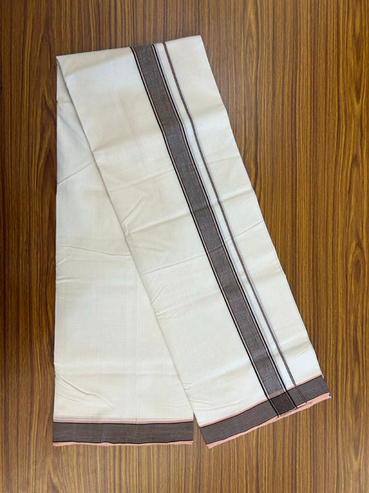 25% DISCOUNT!! KaithariKada HANDLOOM UNAKKUPAAV Balaramapuram - 100% PURE Cotton OFF White - (Unbleached) Double Mundu/Dothi - 100 x 80 - 1.50 inch Peach Black Kara 3.80 meter (8.5 mulam) - 31 KK5249 REA