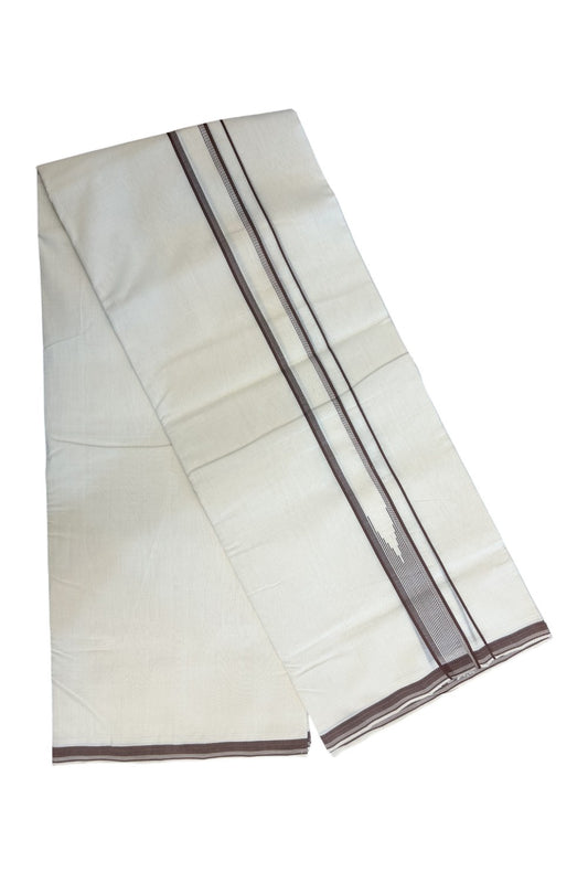 25% DISCOUNT!! KaithariKada HANDLOOM UNAKKUPAAV Balaramapuram - 100% PURE Cotton OFF White - (Unbleached) Double Mundu/Dothi - 100X100 - 1.5 inch Puliyilakkara Brown & white striped chutty - 1KK5167REA