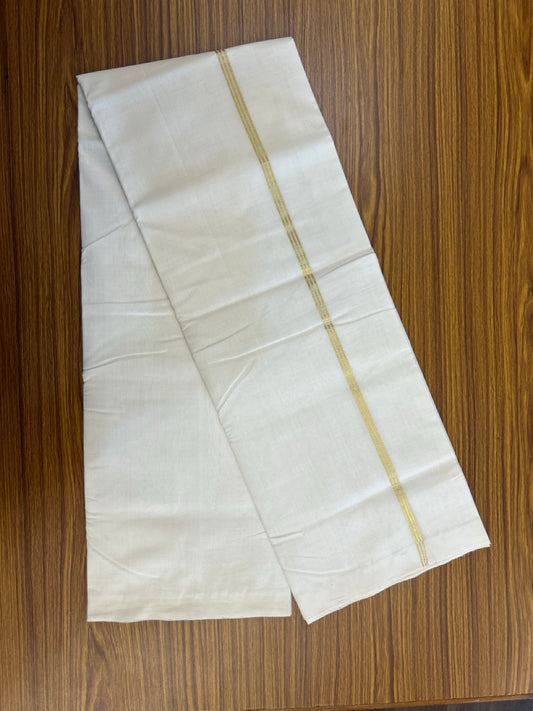 25% DISCOUNT!! KaithariKada HANDLOOM UNAKKUPAAV Balaramapuram - 100% PURE Cotton OFF White - (Unbleached) Double Mundu/Dothi - 100 x 80 - Gold Kasav PURE JERRY - 3.80 meter (8.5 mulam) - 44 KK5249 REA