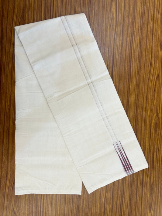 25% Discount!! KaithariKada Handloom Millpaav Balaramapuram - 100% Pure Cotton Off White - (Unbleached) Double Mundu/Dothi - 3 inch Maroon Gold kasav stripes kara - 9KK495RAM