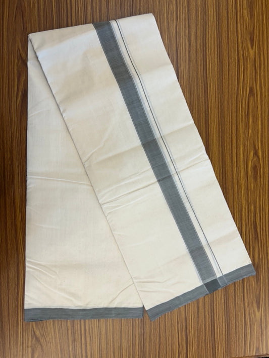 25% Discount!! KaithariKada Handloom Millpaav Balaramapuram - 100% Pure Cotton Off White (Unbleached) Double Mundu/Dothi - 80x90 - 1.25 inch Ash Grey Mulloth Kara 4.16 Meters (9 Muzham) - 60KK5234 RAM