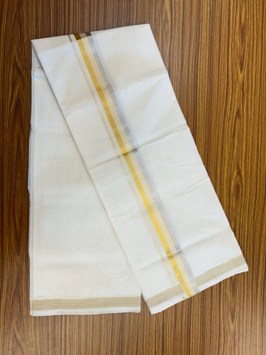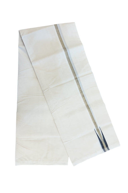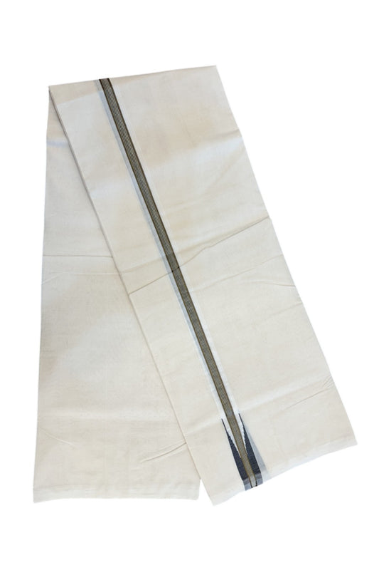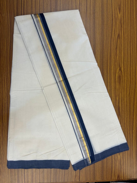 25% Discount!! KaithariKada Handloom Millpaav Balaramapuram - 100% Pure Cotton Off White Double - (Unbleached) Mundu/Dothi -80x90 - 1.5 Inch Silver Kasav & Gold Kasav Navy Blue Stripes kara 4mtr (8.5 muzham) - 9 KK5264 RAM