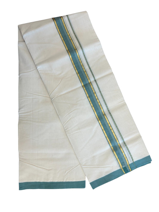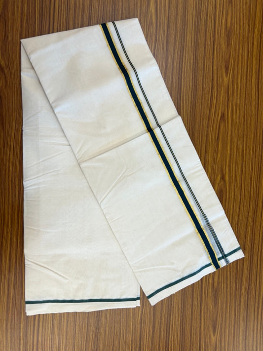25% DISCOUNT!! KaithariKada HANDLOOM Millpaav Balaramapuram - 100% PURE Cotton OFF White Double - (Unbleached) Mundu/Dothi - 1.75 Inch Gold Kasav Green kara - 15KK5153RAM