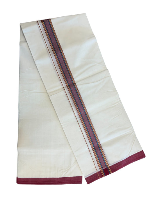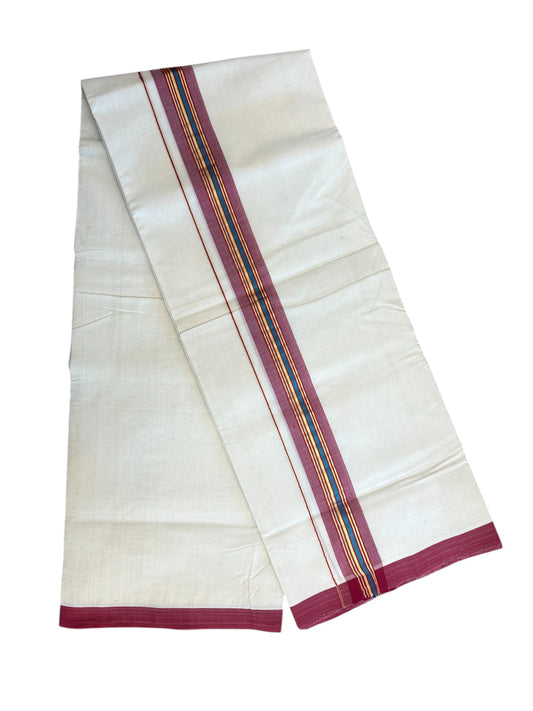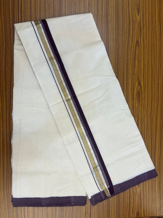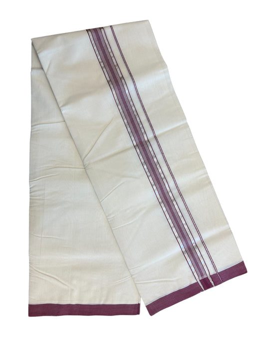 25% Discount!! KaithariKada Handloom Millpaav Balaramapuram - 100% Pure Cotton Off White Double - (Unbleached) Mundu/Dothi -80x90 - 1.5 Inch Silver Kasav & Gold Kasav Wine Purple Stripes kara 4mtr (8.5 muzham) - 10 KK5264 RAM