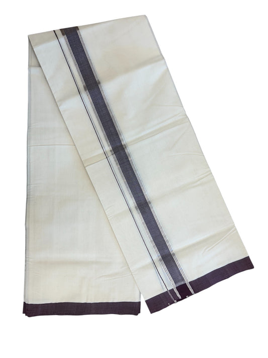25% DISCOUNT!! KaithariKada HANDLOOM Millpaav Balaramapuram - 100% PURE Cotton OFF White Double - (Unbleached) Mundu/Dothi - 1.75 Inch Silver Kasav Dark Purple kara - 27KK5153RAM