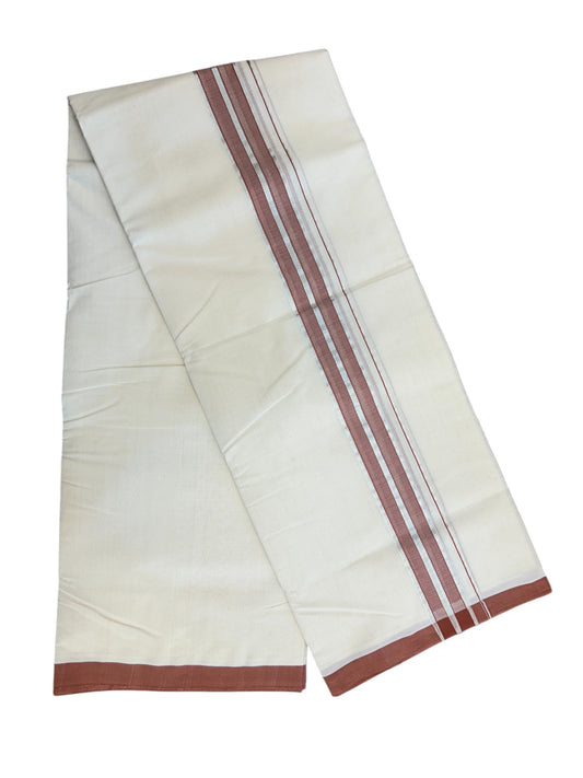 25% Discount!! KaithariKada Handloom Millpaav Balaramapuram - 100% Pure Cotton Off White Double - (Unbleached) Mundu/Dothi - 80x90 - 0.5 Inch Kasav Brownish Maroon Puliyilakkara chutty - 68KK5234 RAM
